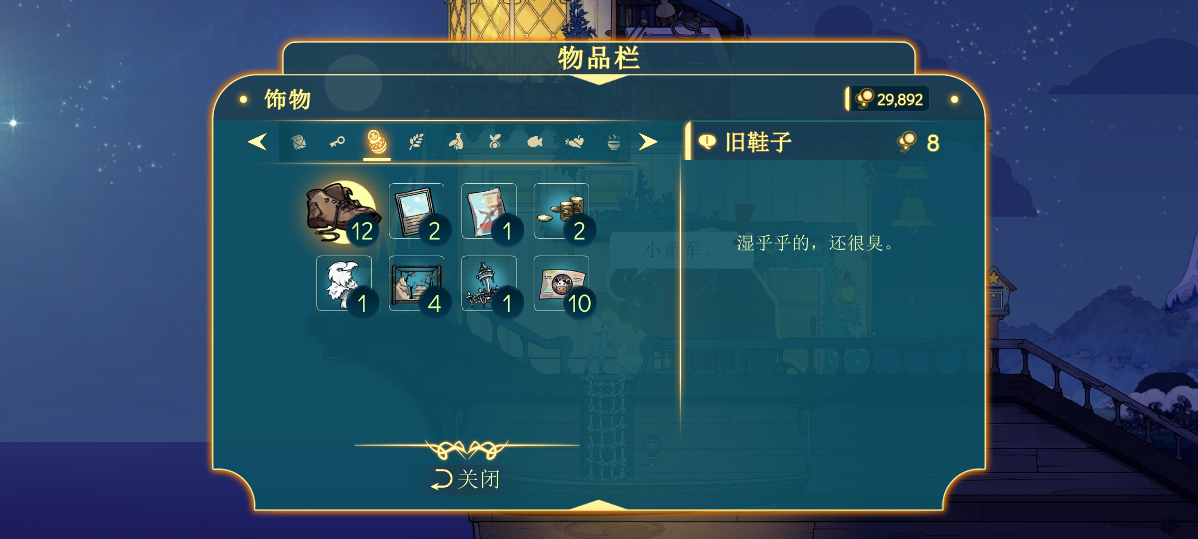 文件和特殊作用于推进主线和支线,就是一些所谓的任务道具,饰物通过地图板条箱,奇怪种子种植和地图宝箱等方式获取,可以卖出作为灯火收入来源(只有流浪商人会收,浣熊🦝商店不收)