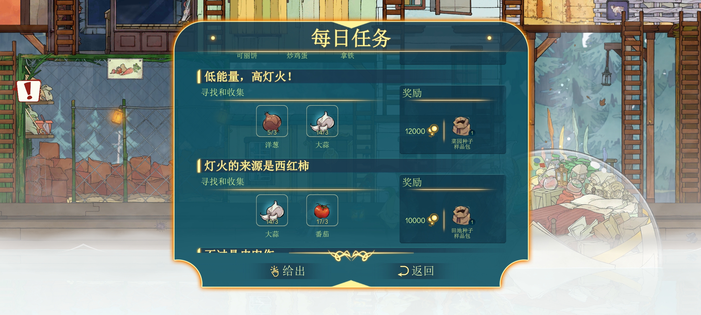 赚取灯火除了卖东西,做流浪商人的每日任务是最快的途径,有一说一,流浪商人不仅什么东西都收购,做委托还能获取一些其他地方没有的种子和物品(例如枫糖浆)流浪商人建议改名散财童子x