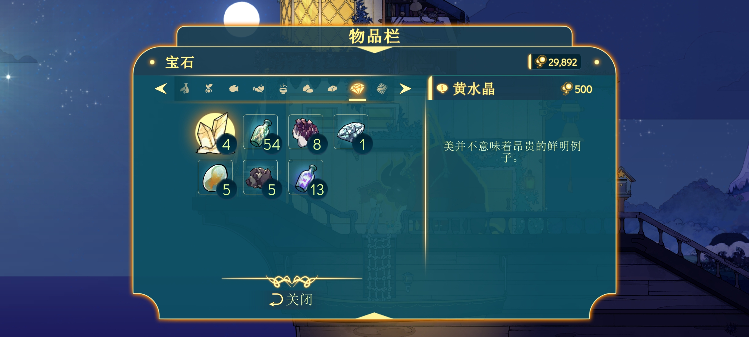 宝石的卖出价较高,在灯火不足时容易被直接变现为灯火,虽然可以通过开宝箱、找流浪商人做任务或在后期升级技能后采矿获得,但是个人建议宝石不要着急卖,还是屯着好,灯火做委托就够花,变卖家产容易后悔(💎在后面会被用作升级船的材料)