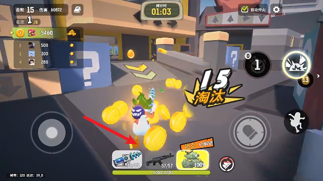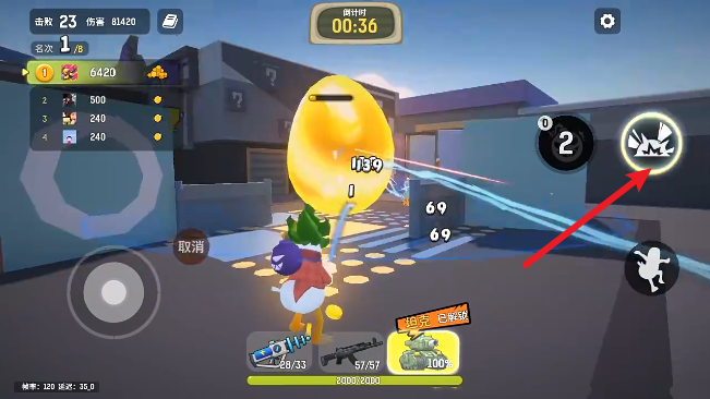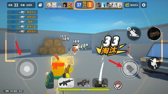 1、游戏中拖动左侧摇杆进行移动,点击右侧按钮即可射击。