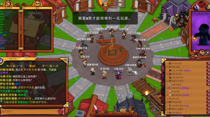 3、角色扮演:每个玩家都有独特的角色和能力,可以是镇民、女巫团成员、中立角色或启示阵营的一部分。