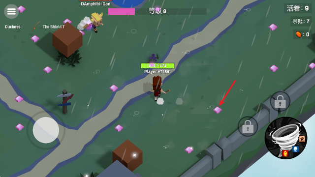 2、拾取地上的经验宝石即可提升等级。