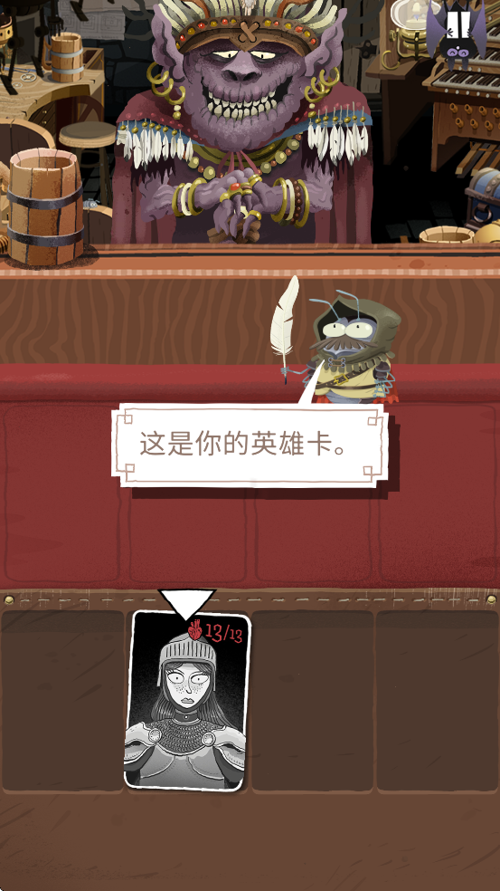 在英雄旁边是手部槽位,你可以从这里使用你的道具卡。你的英雄还有一个背包槽位--很适合存放留待后用的卡牌。