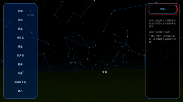 3、高自由度探索:支持随意拖拽、切换视角,可从任意位置、角度观测天体,还能通过搜索功能快速定位目标星球,满足玩家个性化的探索需求。