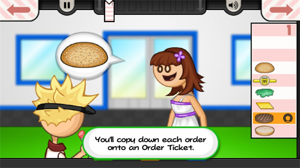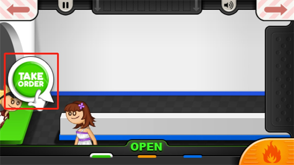 5、开门之后会有顾客前来购买食物,我们点击【take order】去进行交谈,得知对方的需求;