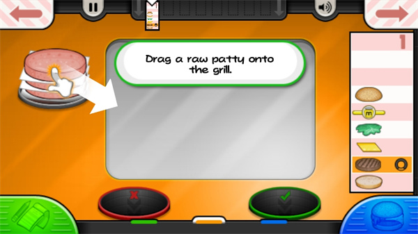 7、随后我们就可以根据指引来到制作界面,在这里开启制作汉堡的过程。