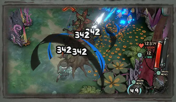 3、战斗体验独特:区别于传统肉鸽的自动战斗,游戏强调即时操作,普攻、技能、位移可形成连贯连击,搭配武器切换机制,近战范围清怪与远程风筝敌人的体验截然不同,打击感十足。