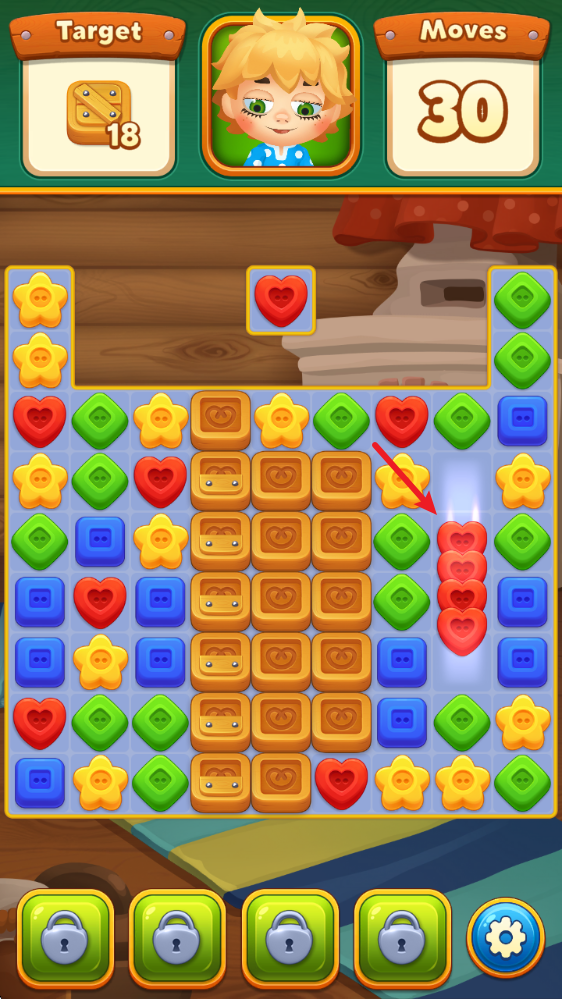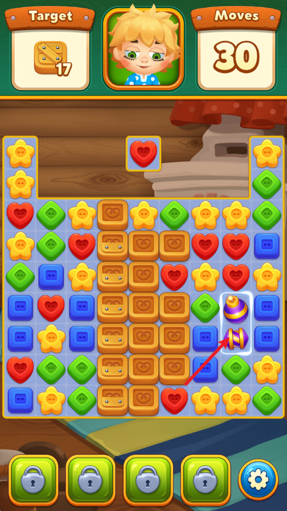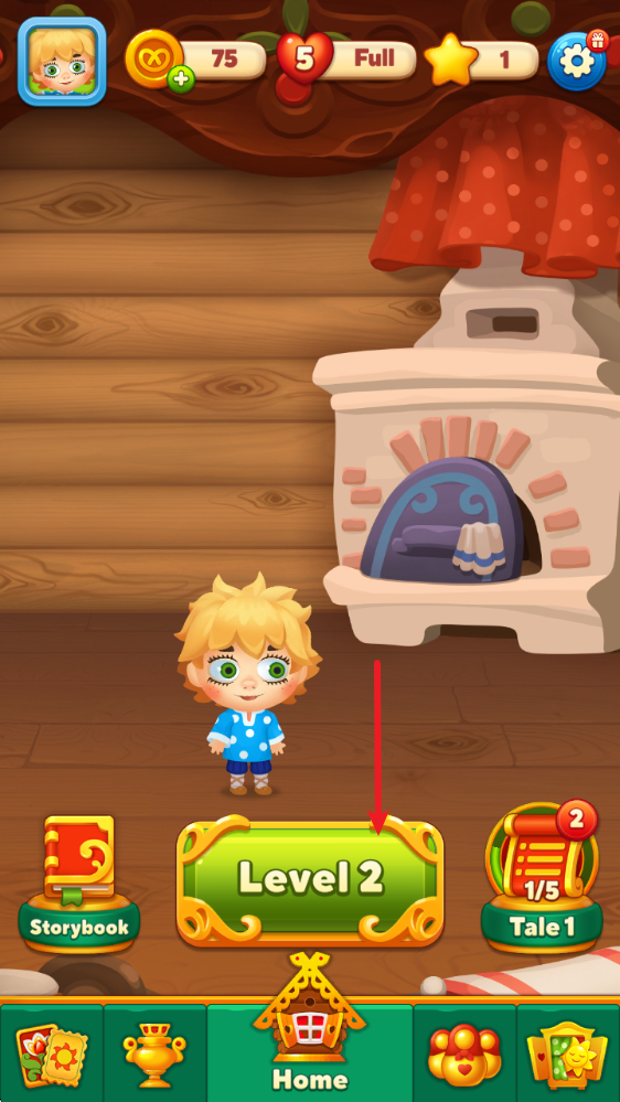 1、游戏分为三消闯关和建设两个部分,首先点击下方的关卡开启挑战。