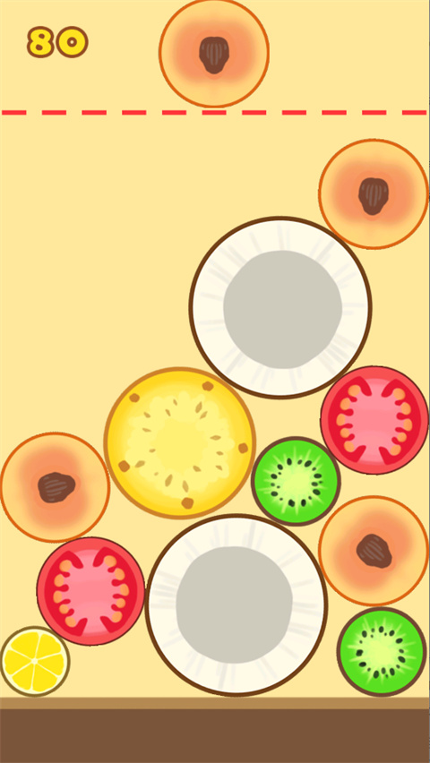4、当屏幕中堆满了水果而无法再进行合成时,游戏结束。