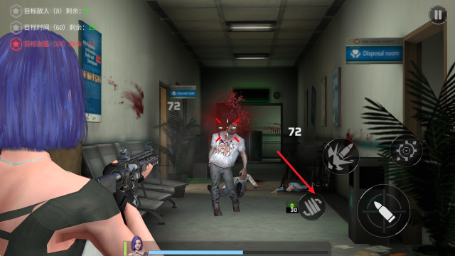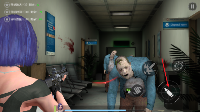 2、瞄准后,点击右侧的子弹按钮即可射击。