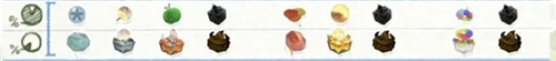 包括水星波子糖、月球棒棒糖、水星/火星果汁宝石、脆叶片、水晶苹果、黑布丁、彩虹圈、太阳蛋、月之盘、森之盘、朱古力盘、彩虹盘等。
