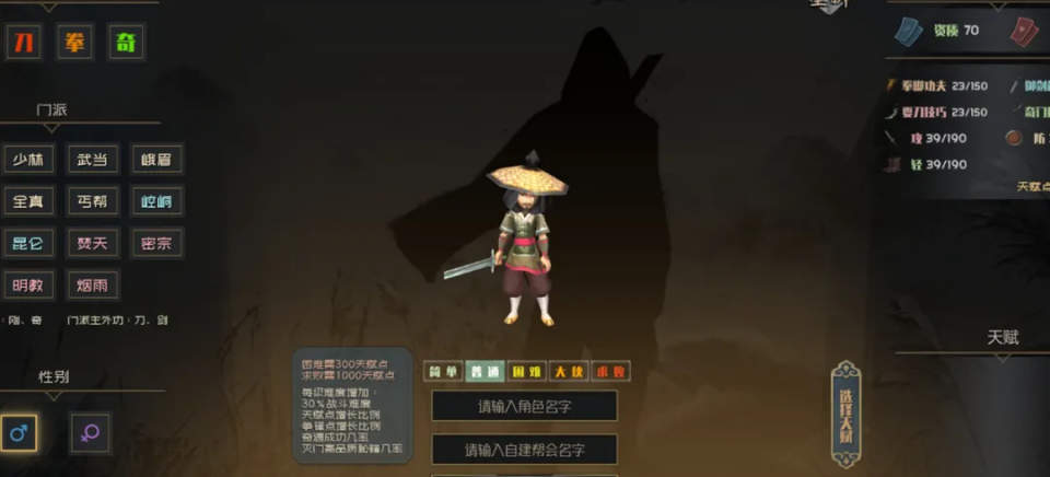 1、可完全自定义的专属侠客。以“记名弟子”的低微身份踏入江湖,体验从无名小卒到一代宗师的完整成长线。