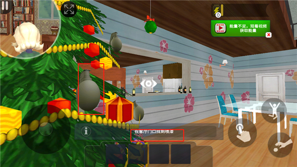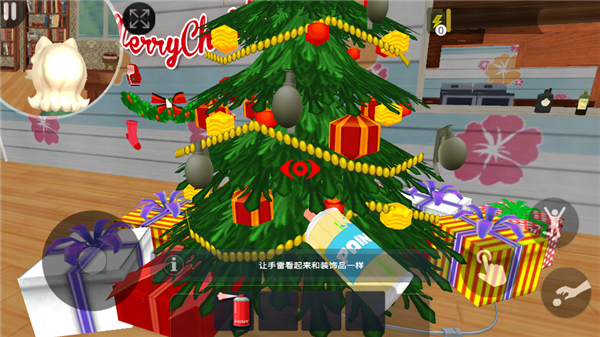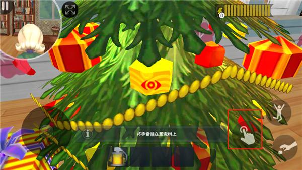 7、然后返回客厅,将手雷挂到圣诞树上;