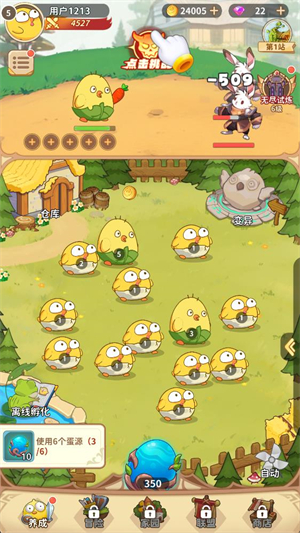 2、孵化后的小鸡可以进行合并,相同数字的小鸡可以合并提升等级。