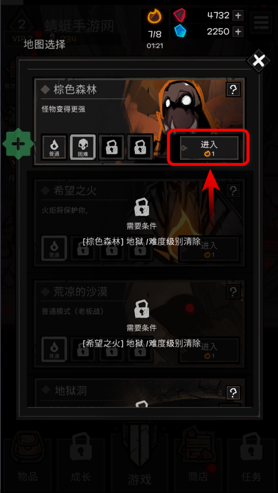 2、选择地图,点击进入。