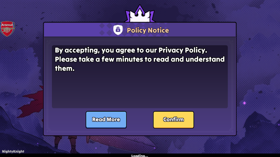 1、打开暗夜骑士边境战争游戏,首先我们需要同意隐私政策,点击继续
