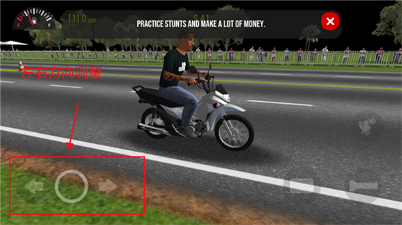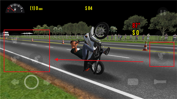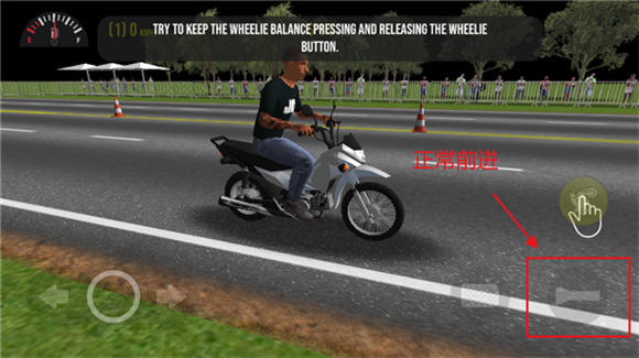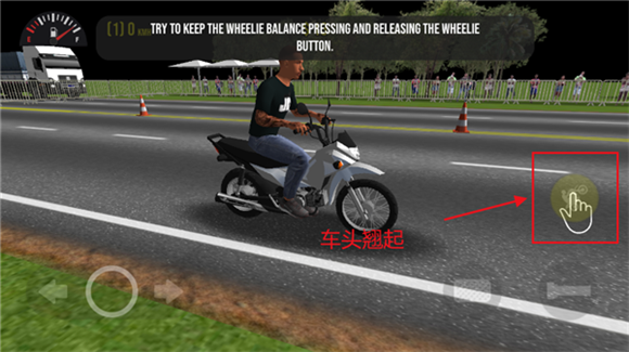 1、右边的按钮是让摩托车头翘起来,和驾驶一起按就是车头翘起前进的特技;
