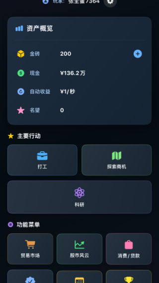 2、纯文字界面搭配简洁的数值操作,无复杂的操作技巧和规则,新手玩家也能快速掌握打工创业核心玩法。