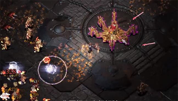 5、等四个机关全部打完后boss就会出现,boss会在地图中间,因为一直选择的防御和回血,所以角色会特别肉,甚至可以直接站在怪物堆里和boss打,如果血量低了就靠走位躲避技能回血,等击败boss后就可以通关。