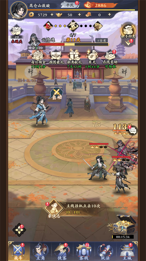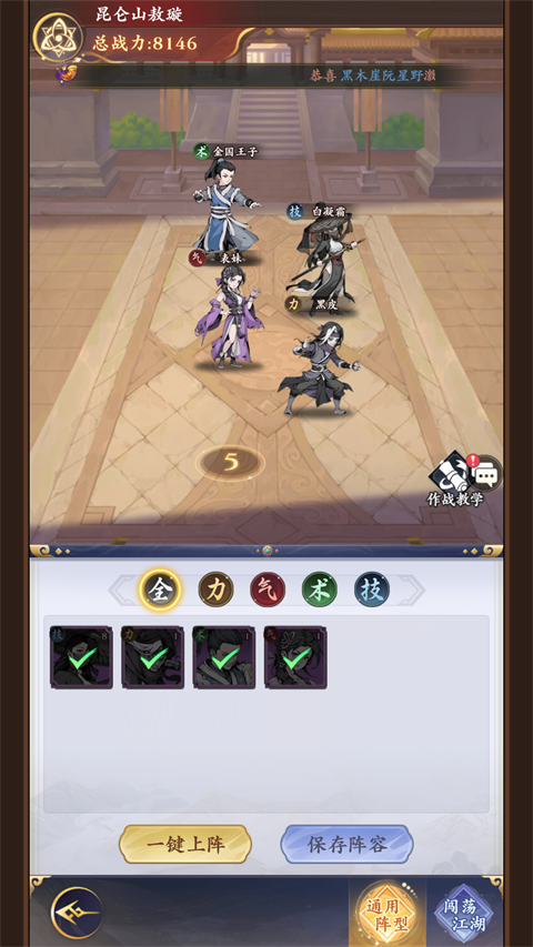 2、前期可以招募尽可能的招募获取更多侠客,并进行一键上阵即可;