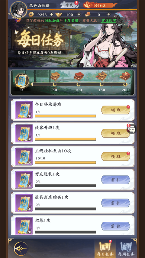 5、每日任务是必须要完成的,获得经验可以拿奖励;