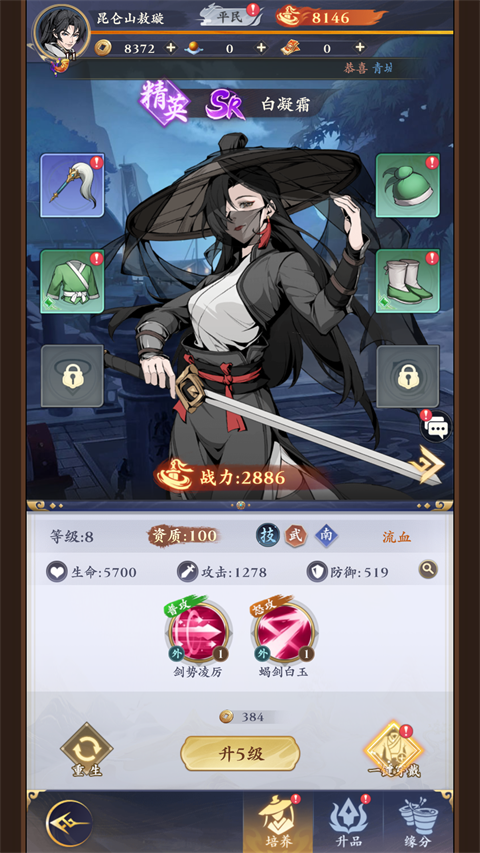 3、养成选择属性好的进行升级,战斗收益更好;