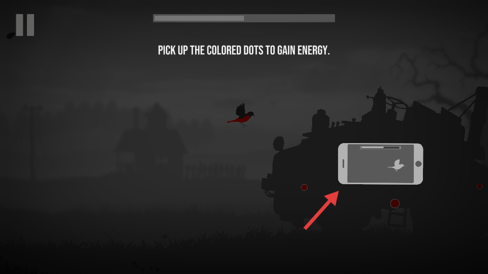 1、玩家操控小鸟在充满辐射的暗色调剪影世界中飞行穿梭与战斗。