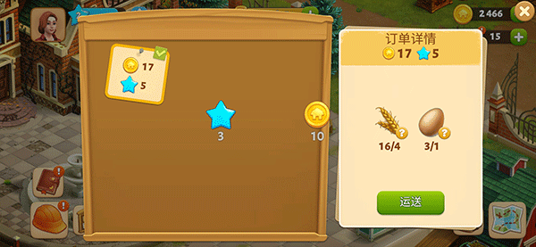 9、另外在订单板中,玩家消耗相应物资完成订单后同样可以获得星星和金币奖励哦