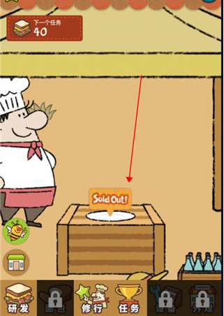 在训练选项中,主要是可以用来对厨师的技能进行提升,分为简单训练和难度训练两种训练方法,通过点击经验星星的方式进行能力的提升,提升后对于产品的制作和销量都会有所帮助;在任务选项中是一系列需要玩家完成的任务,通过完成任务可以得到相应的奖励用来发展三明治摊子;