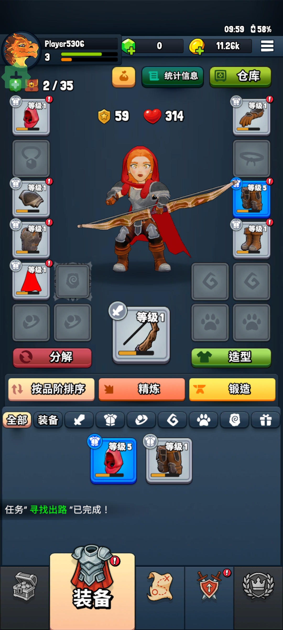 5、获得的装备可以为装备角色来提升实力;