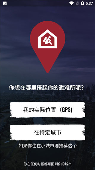 2、选择你的位置来搭建避难所,可选择你的实际位置和特定城市位置;