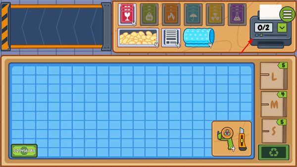 3、点击之后左上方会有物品通过传送带运过来,选择合适的物品以及箱子将其打包好。