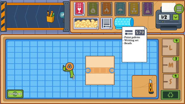 4、随后,使用胶带封箱、贴上运单的步骤,都配有逼真的音效和顺滑的动画,带来强烈的完成感与视听满足。