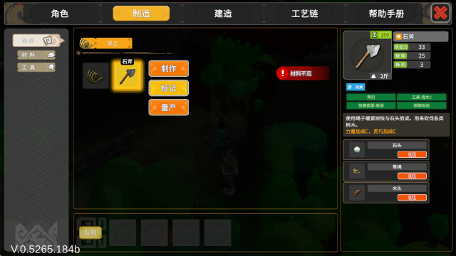 4、在制作台中,我们可以去制作各种工具,但是需要足够的材料。