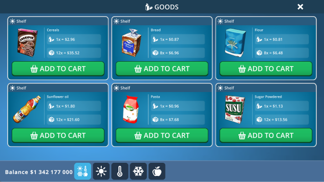 2、我们的模拟器应有尽有:新鲜食品、半成品、家用化学品 - 您的可能性仅受您的财务状况限制。