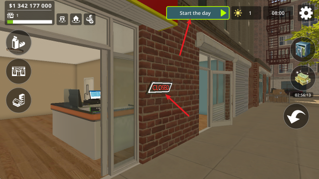 4、随后到门口将“close”点击一下,就可以开启一天的经营了。