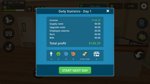 8、待一天的经营结束后,就可以去结算你的总收入了。