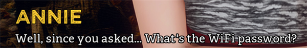 (Annie跑去玩Eternum游戏了,主角还在先问WiFi密码,颇具滑稽感)。