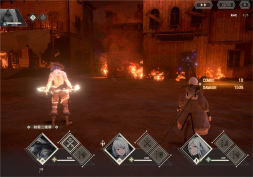 战力足够,开自动模式却无法全员存活通关时,建议改回手动,战斗开始时点选集火目标,等全员的武器技能冷却时间结束后一口气点开,就会有Combo 伤害加成。基本上战力小于敌方8,000~1 万以内,用手动都有机会全员存活通关。