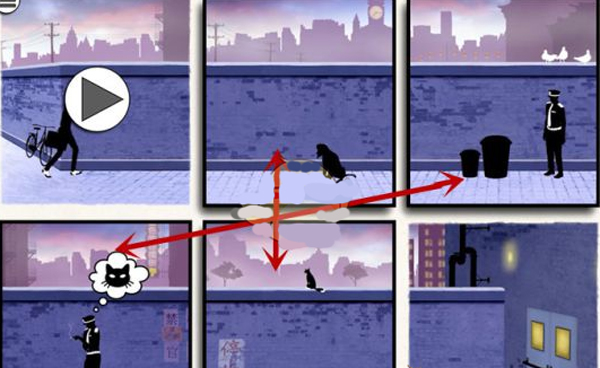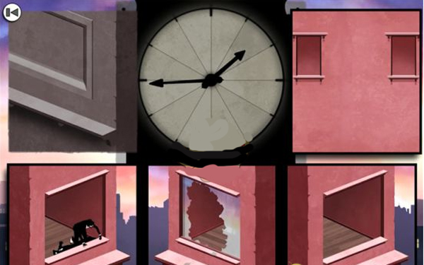 到了第四章后,玩家可以感觉到比之前明显轻松很多了,只需摆放好位置就可以了。有两部分,一开始是久违的简单关卡,调换一下下面画面的位置就可以了,还有就是高楼追逐,也是涉及需要多次调整,稍微复杂一点