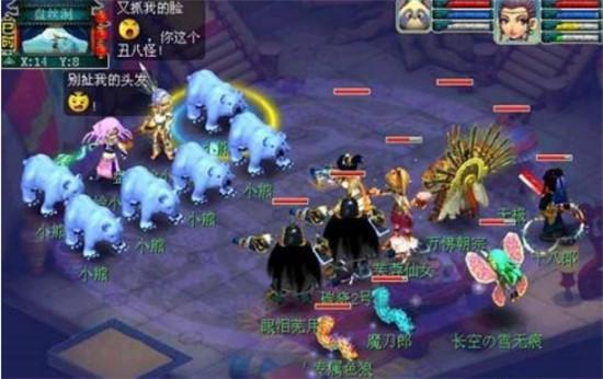 11、接着找大大王对话,在找二大王对话,再找三大王对话,然后找三大外面的牛妖对话,在回头找三大王对话触发战斗(提示:先杀主怪,所有怪可封印,主怪攻高,前排蝴蝶高法攻抗高,后面老虎物理攻高)(经验25W的经验,9300钱,10点神器积分)。