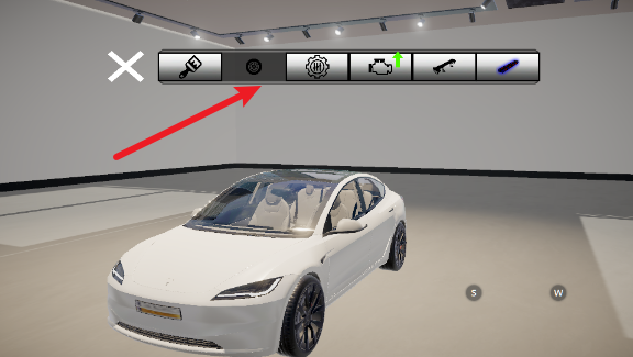 2、在这里可以选择喜欢的汽车进行改装,选好之后点击左侧的扳手按钮进入改装界面。