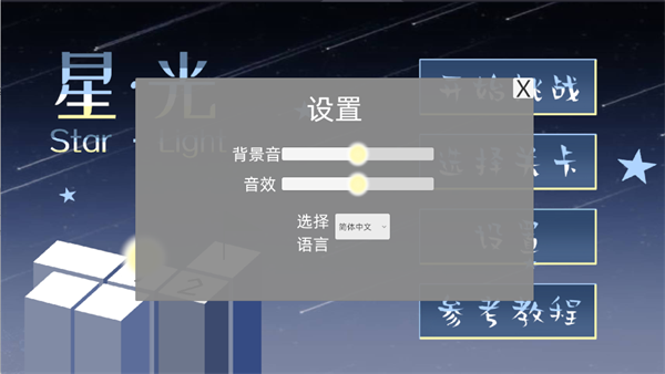 星光StarLight是一款益智闯关游戏,玩家将在50个逐渐升级的关卡中,操控旋涡净化带有数字的方块。每个方块上的数字决定了玩家需要走动的步数,随着关卡的推进,更多复杂的方块和公式将加入,带来越来越高的挑战。游戏提供了丰富的设置选项,支持音量调节和语言切换,让玩家能够根据个人喜好定制体验。在净化回忆和黑暗元素后,玩家将面临一个影响现实的关键选择,游戏的剧情也随之展开。
