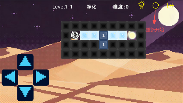 如果在操作过程中出现失误或者被困住,点击上方的图标即可重新启动当前关卡,重新挑战。