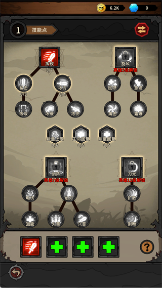 2、技能升级:点击底部【技能】,消耗技能点强化技能,优先点满核心输出技能,提升清怪效率。