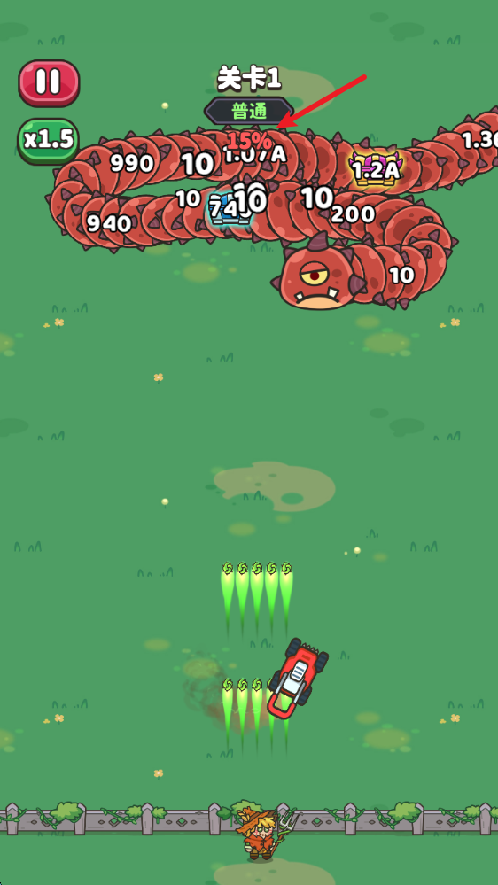 1、进入游戏后拖动角色左右移动即可进行攻击。
