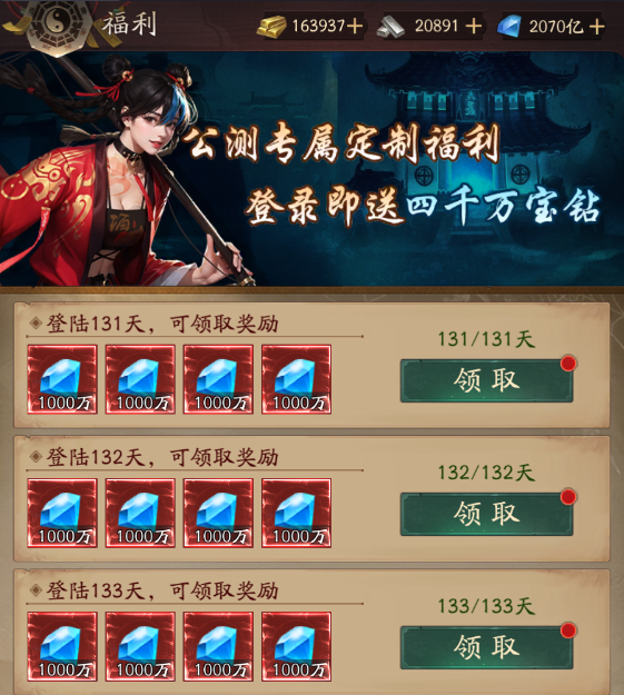 1、相比同类型竞品,我们游戏上线即送大量钻石,可以免费领取各种游戏资源、外观