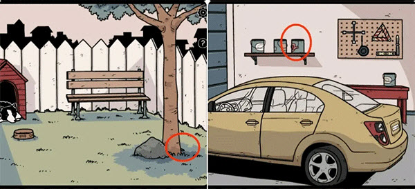 4、在后院拿走树根处的铁铲,然后到车库用其打开架子上的颜料罐拿到钥匙。注:钥匙可以打开后院的电箱。
