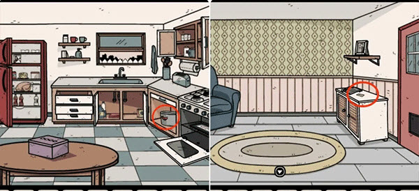 2、到各个场景搜刮道具,先进入厨房拿走铁锅,再到客厅电话旁输入桌子上的电话461-0358,给哥哥拨打电话后获得纸条。