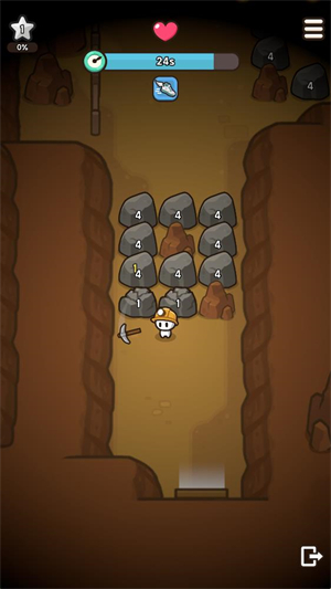 3、玩家将扮演一名活泼的矿工,通过简单的点击操作向地下深处进行持续性的挖掘与探索。